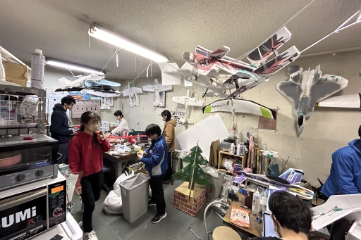 航空研究会はラジコン飛行機やドローン(マルチコプター)、モデルロケットなどの「空を飛ぶもの」を作っている「ゆるくて強いものづくりサークル」です! 毎日飛行機を作っている部員からお茶を飲みに来るだけの部員まで、さまざまなスタイルで活動している部員がいます! 飛行機やドローンの知識がなくても大丈夫です! ・空きコマに時間をつぶす場所を求めている人 ・冷暖房あり、強めのwi-fiあり、冷蔵庫と電子レンジありの部室でのんびりしたい人 ・ラジコン飛行機やドローンの操縦に興味がある人 ・ものづくりに興味はあるけどガチすぎるのは怖い人 ・プログラミングやCADに触れてみたい人 ・先輩とのつながりが欲しい人 ぜひ!航空研究会にお越しください!